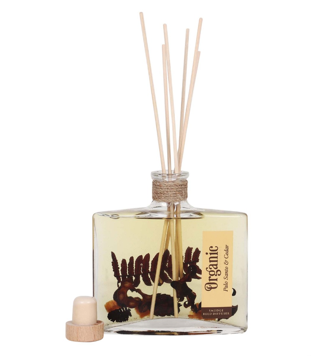 Size: 140 ml – Palo Santo + Cedar Organic Goodness Smudge Reed Diffuser in Flat Bottle