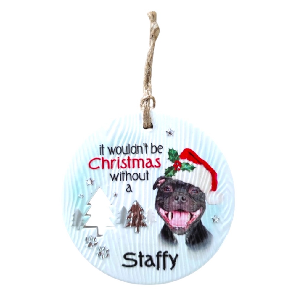 – Each textured Ceramic plaque features a natural rope for hanging and cut out Christmas Tree. Gold & Silver Foil elements for that Festive Feel! Print is raised to give a 3D effect. Reverse side features cork back.
