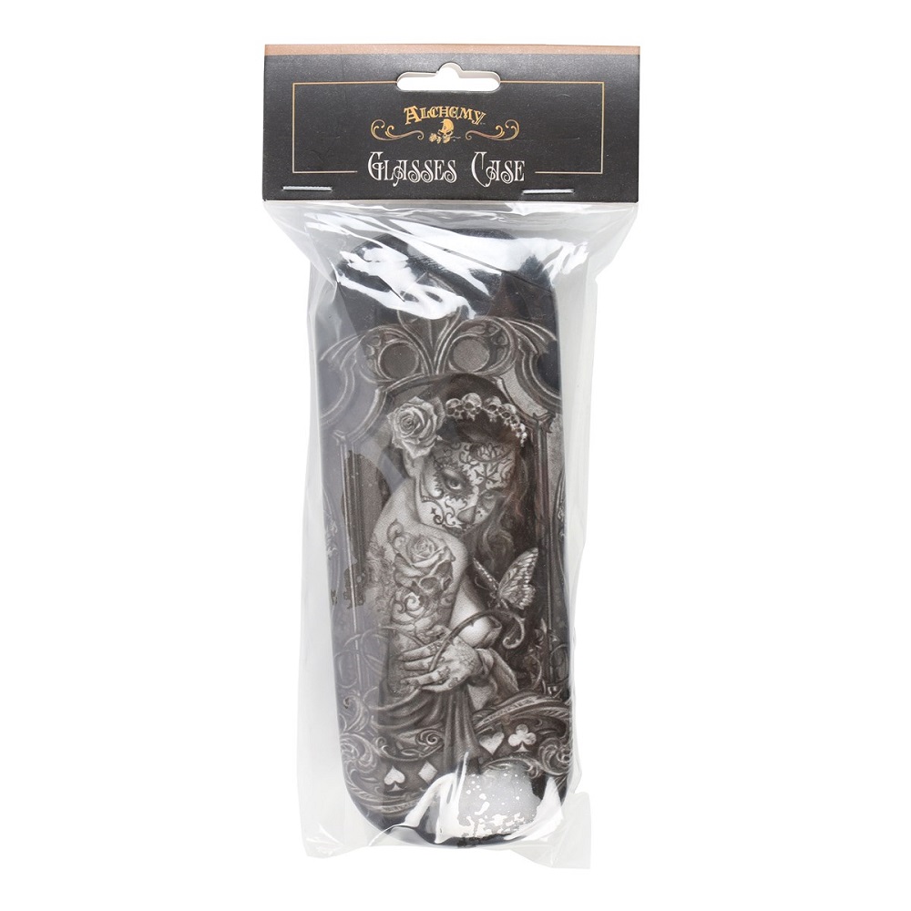 H:6.5 x W:16 x D:3 cm – A hard shell glasses case featuring the eye-catching ‘Widow’s Weeds’ artwork from Alchemy Gothic. Includes a microfibre cleaning cloth for removing dust and smudges. Officially licensed.